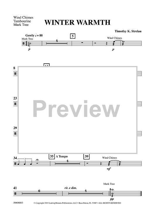 "Winter Warmth - for Large Percussion Ensemble - Wind Chimes/Tambourine/Mark Tree" Sheet Music by Timothy K. Strelau