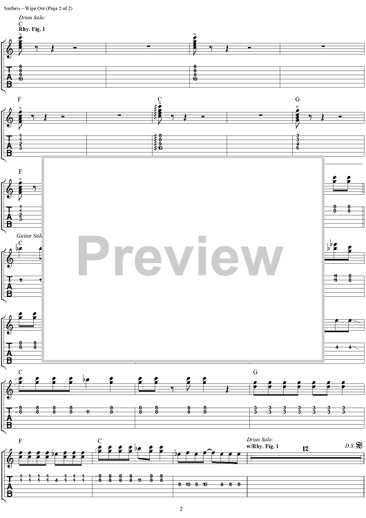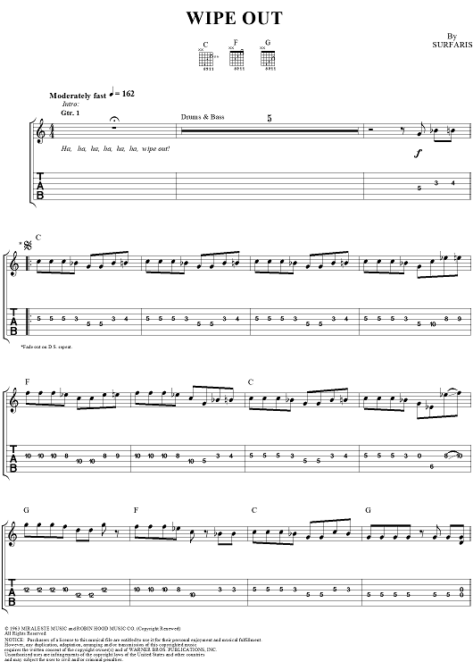 Digital Sheet Music for Wipe Out by Surfaris, Kenn Chipkin scored for Guitar Tab; id:114122