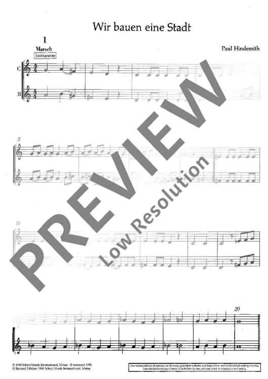 "Wir bauen eine Stadt - Medium Instrumental Part" Sheet Music by Paul Hindemith