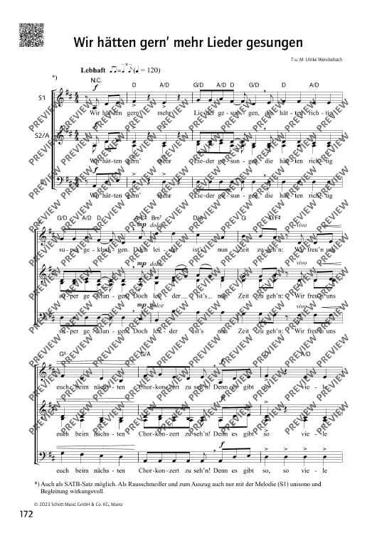 Digital Sheet Music for Wir hätten gern‘ mehr Lieder gesungen by Ulrike Wenckebach scored for School Choir, Mixed Choir (ssab); id:500602