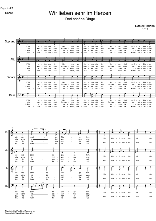 Digital Sheet Music for Wir lieben sehr im Herzen by Daniel Friderici scored for SATB Choir; id:325869