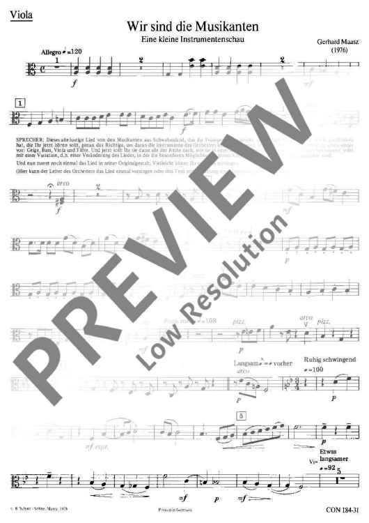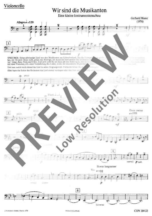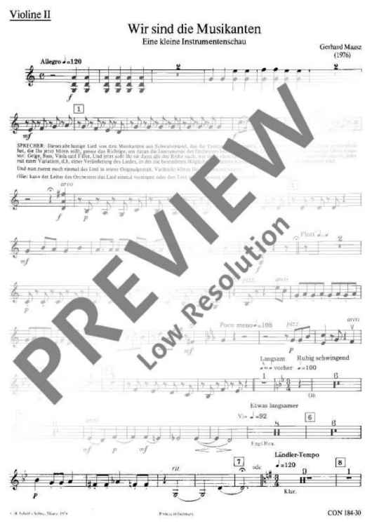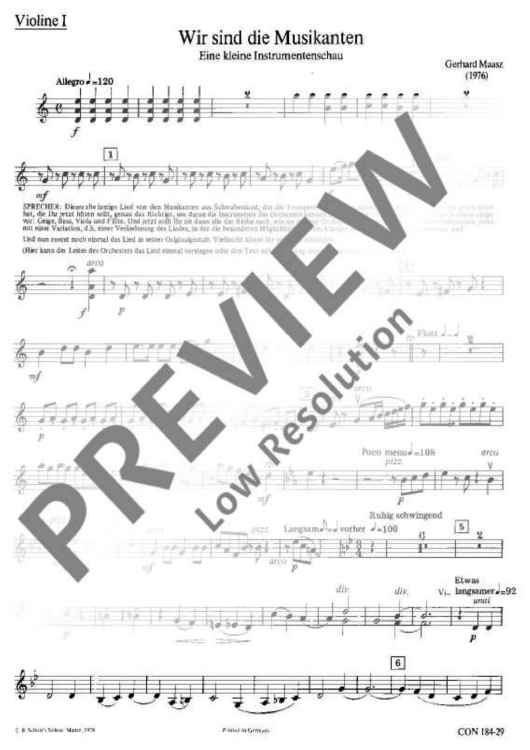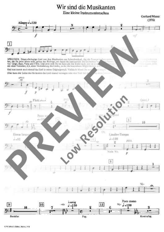 Gerhard Maasz studied composition with Paul Graener and sympathized with the youth music movement around Fritz Jöde. In the „kleine Instrumentenschau“ created in 1977 he uses the popular folk song „Wir sind die Musikanten“ (which can be joined in by a one-part chorus) introducing systematically the individual orchestral ins-tru-ments. A work for children’s and school concerts allowing the players and listeners an insight into the structure of an orchestra in a cheerful way.