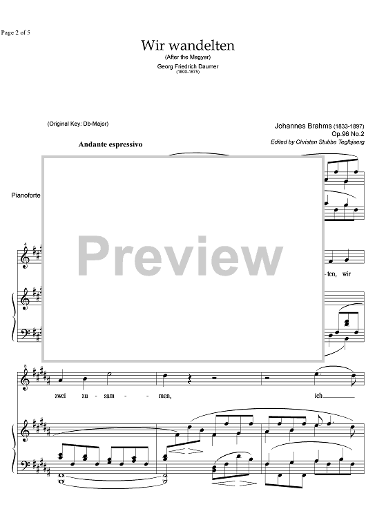 "Wir wandelten Op.96 No. 2" Sheet Music by Johannes Brahms