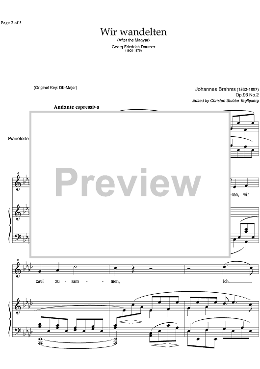 "Wir wandelten Op.96 No. 2" Sheet Music by Johannes Brahms