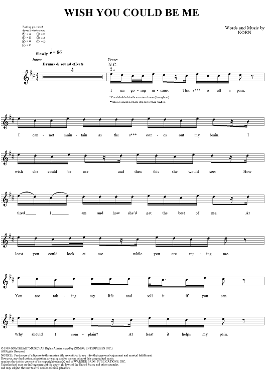 Digital Sheet Music for Wish You Could Be Me by Korn scored for Guitar Tab/Vocal; id:206917