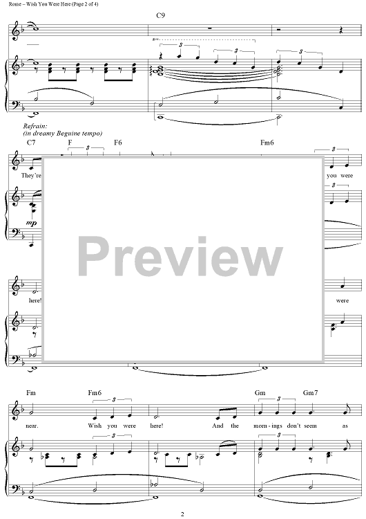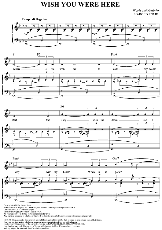 Digital Sheet Music for Wish You Were Here by Harold Rome scored for Piano/Vocal/Chords; id:315550