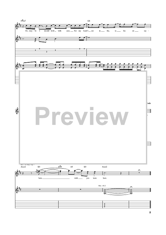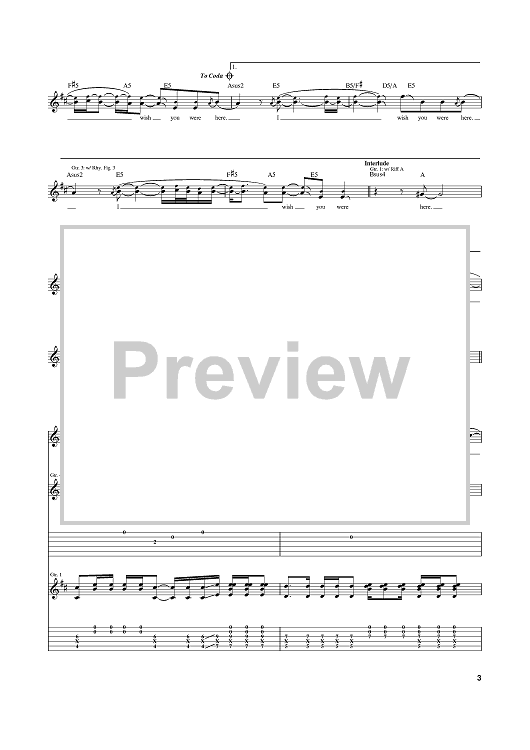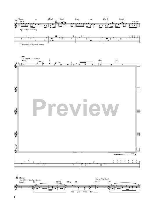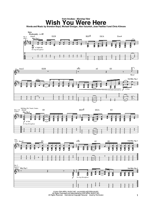 Digital Sheet Music for Wish You Were Here by Brandon Boyd, Incubus, Alex Katunich, Chris Kilmore scored for Guitar Tab; id:367883