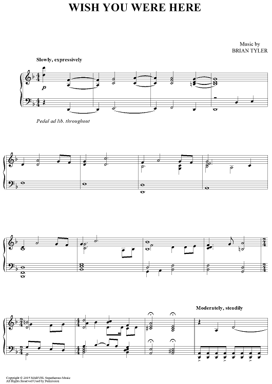 "Wish You Were Here" Sheet Music by Brian Tyler