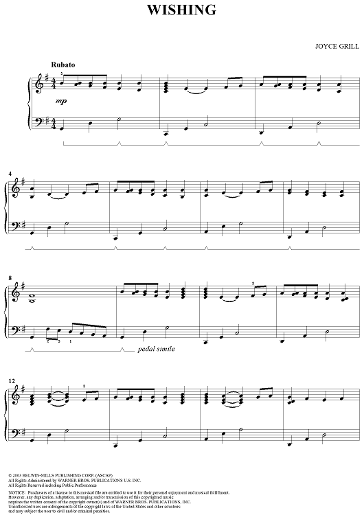 "Wishing" Sheet Music by Joyce Grill