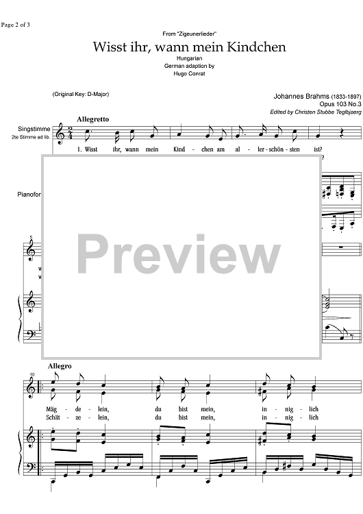 Digital Sheet Music for Wisst ihr, wann mein Kindchen Op.103 No. 3 by , Johannes Brahms scored for Mezzo-soprano or Baritone/Piano; id:334127