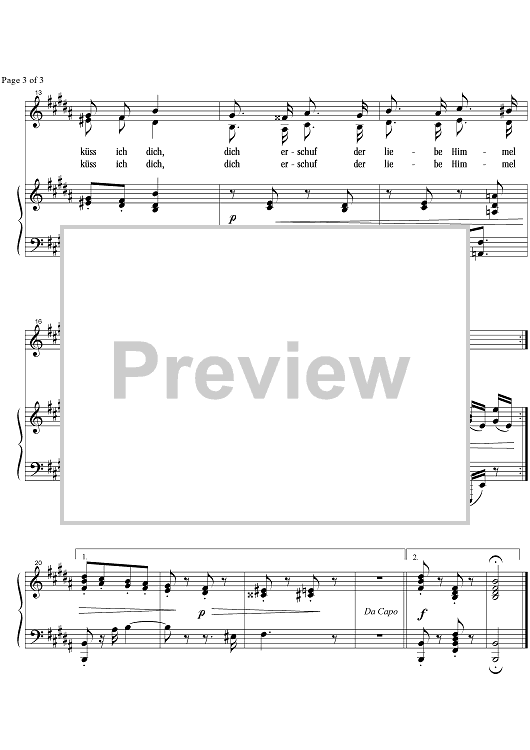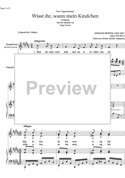 "Wisst ihr, wann mein Kindchen Op.103 No. 3" Sheet Music by Johannes Brahms