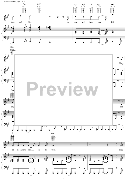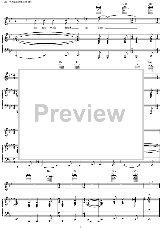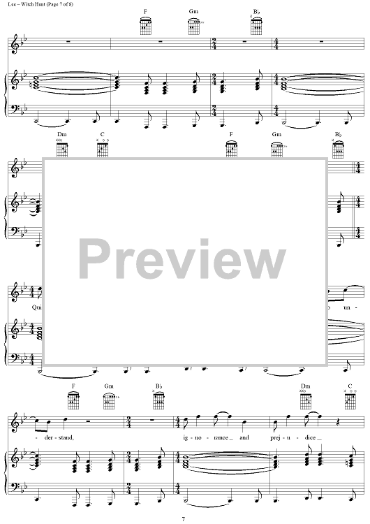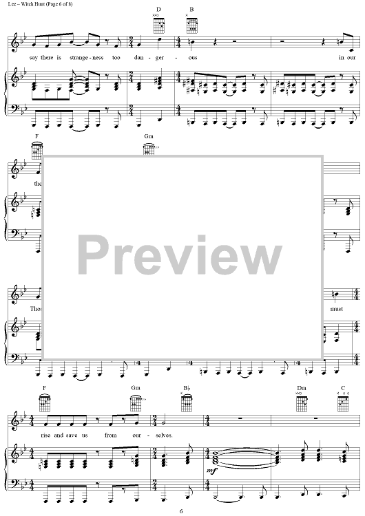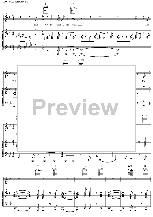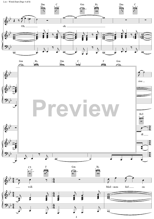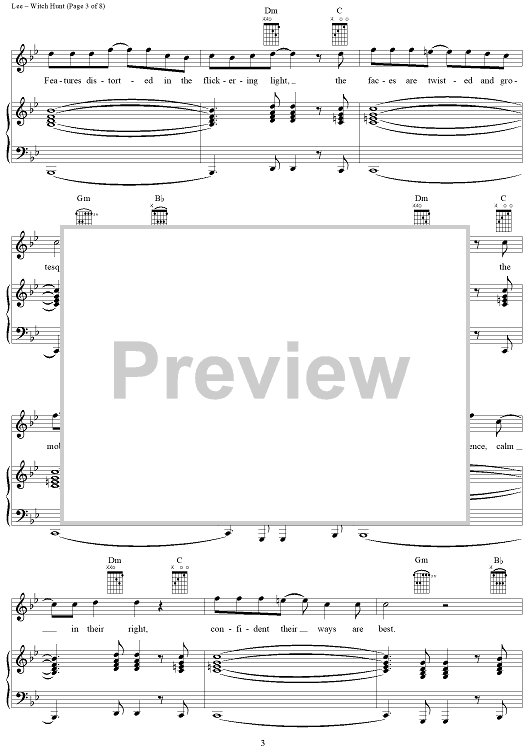 Digital Sheet Music for Witch Hunt by Rush, Geddy Lee, Alex Lifeson, Neil Peart scored for Piano/Vocal/Chords; id:250453