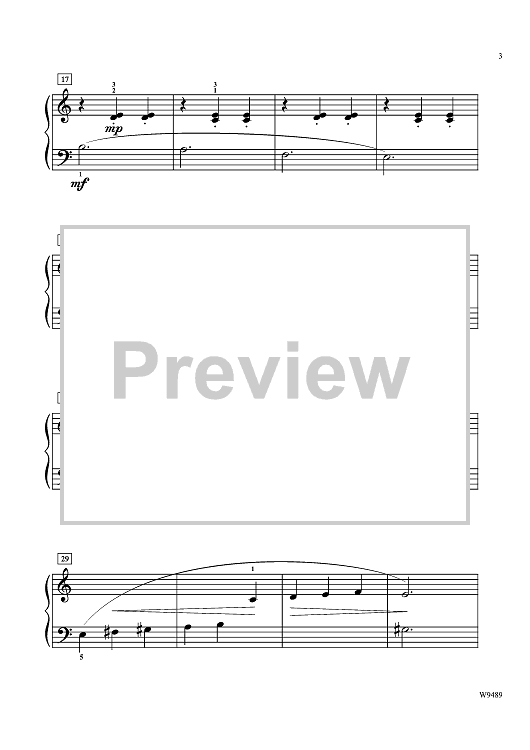 A hauntingly beautiful waltz in A minor in "almost" middle C position. Simple yet artistic, the hands remain in a five-finger position with octave shifts at the end. This piece teaches lyricism, the phase gesture, and legato and staccato. Hands play mostly alone except for 12 measures in this three-page sheet.