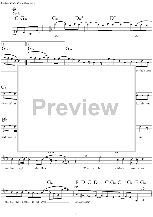 Digital Sheet Music for Witchy Woman by Don Henley, Bernie Leadon, Eagles scored for Lead Sheet; id:219058