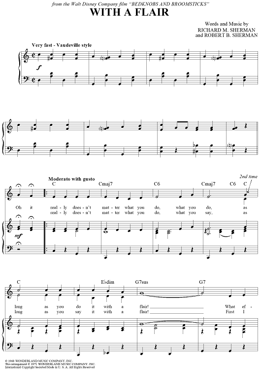 Digital Sheet Music for With A Flair by Richard M. Sherman, Robert B. Sherman scored for Piano/Vocal/Chords; id:423137