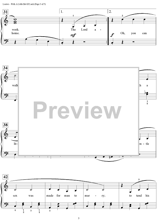 "With a Little Bit of Luck" Sheet Music by Frederick Loewe