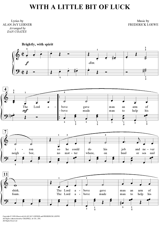Digital Sheet Music for With a Little Bit of Luck by Dan Coates, Frederick Loewe, Alan Jay Lerner scored for Easy Piano/Vocal/Chords; id:450263