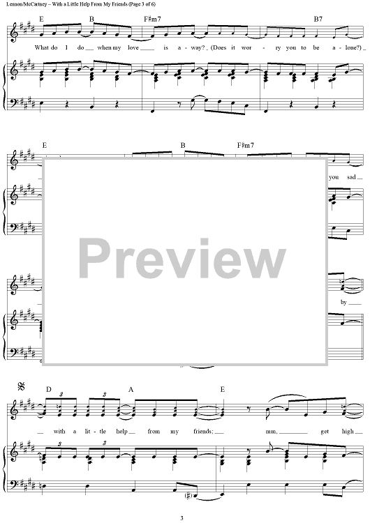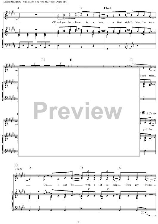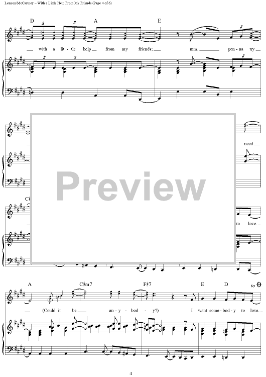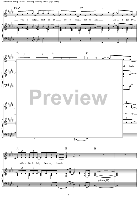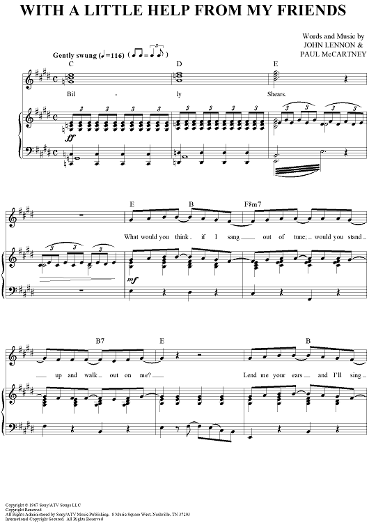 Digital Sheet Music for With A Little Help From My Friends by Paul McCartney, The Beatles, John Lennon scored for Piano/Vocal/Chords; id:361862