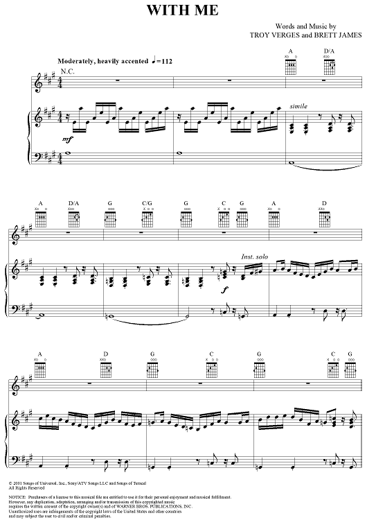 Digital Sheet Music for With Me by Lonestar, Brett James, Troy Verges scored for Piano/Vocal/Chords; id:284450