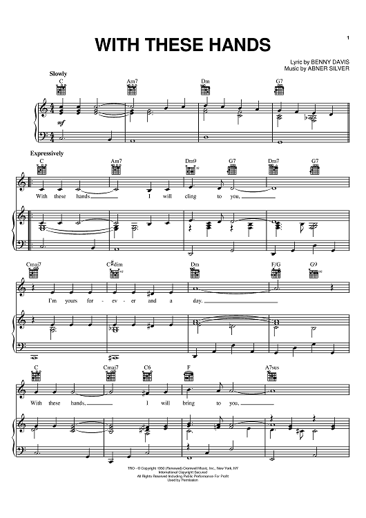 Digital Sheet Music for With These Hands by Benny Davis, Tom Jones, Abner Silver, Shirley Bassey scored for Piano/Vocal/Chords; id:395162