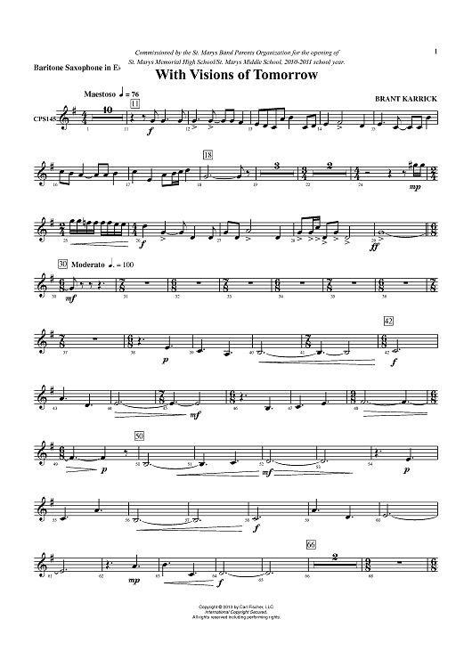 Digital Sheet Music for With Visions of Tomorrow - Baritone Sax by Brant Karrick scored for Concert Band; id:435739
