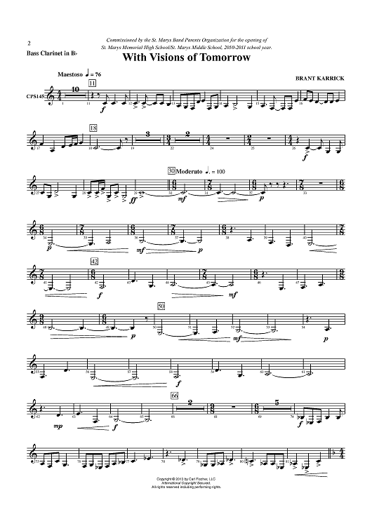 Digital Sheet Music for With Visions of Tomorrow - Bass Clarinet in Bb by Brant Karrick scored for Concert Band; id:435734