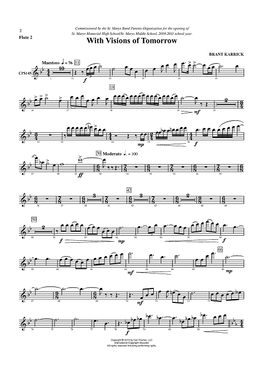 "With Visions of Tomorrow - Flute 2" Sheet Music by Brant Karrick
