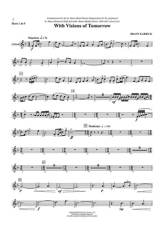 Digital Sheet Music for With Visions of Tomorrow - Horn 1 in F by Brant Karrick scored for Concert Band; id:435743