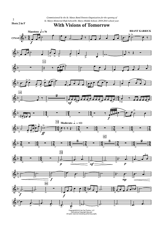 Digital Sheet Music for With Visions of Tomorrow - Horn 2 in F by Brant Karrick scored for Concert Band; id:435744