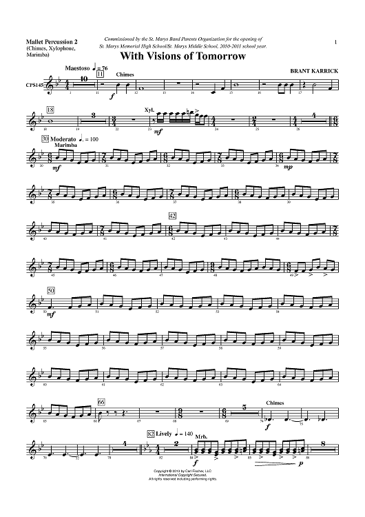 Digital Sheet Music for With Visions of Tomorrow - Mallet Percussion 2 by Brant Karrick scored for Concert Band; id:435752