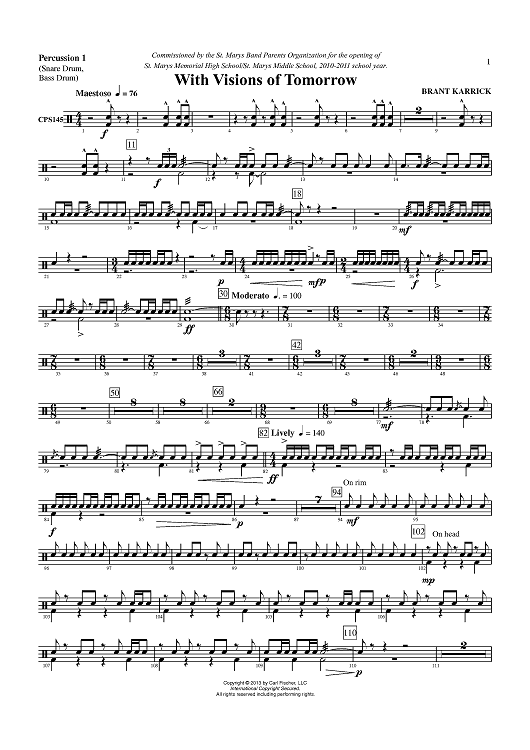 "With Visions of Tomorrow - Percussion 1" Sheet Music by Brant Karrick
