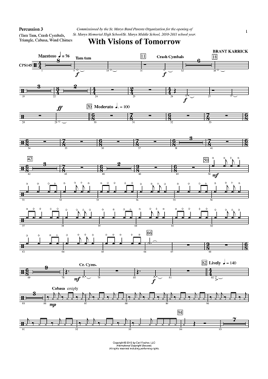 "With Visions of Tomorrow - Percussion 3" Sheet Music by Brant Karrick