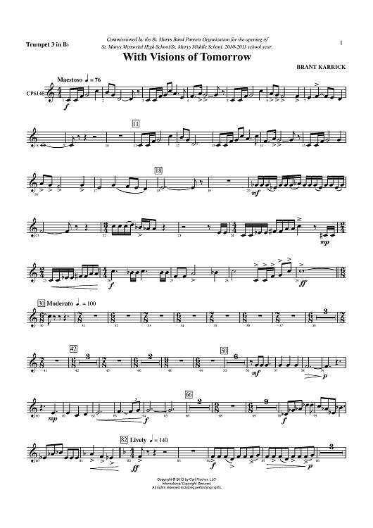 "With Visions of Tomorrow - Trumpet 3 in Bb" Sheet Music by Brant Karrick