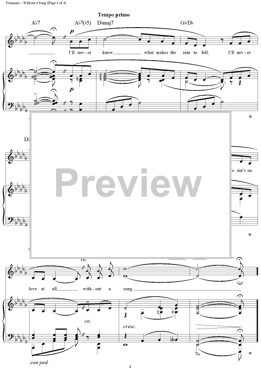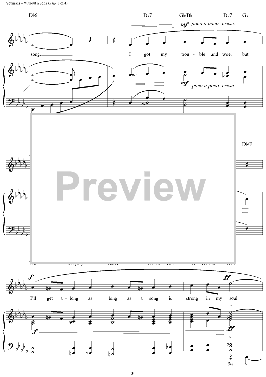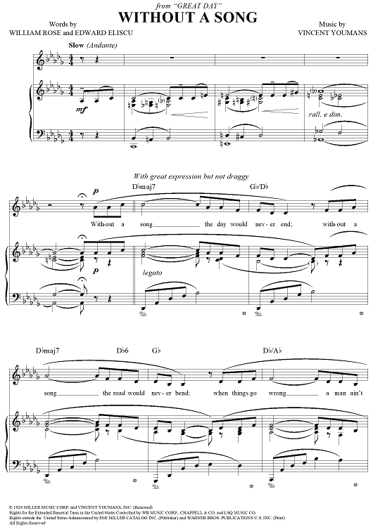 Digital Sheet Music for Without a Song by Vincent Youmans, William Rose, Edward Eliscu scored for Piano/Vocal/Chords; id:113651