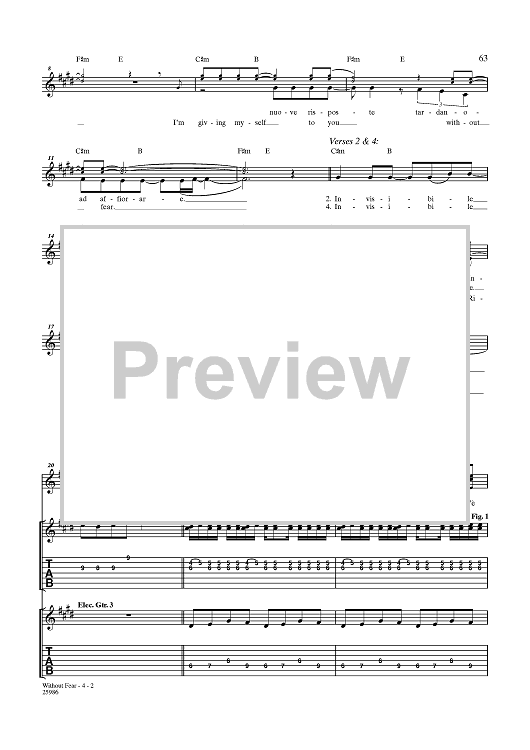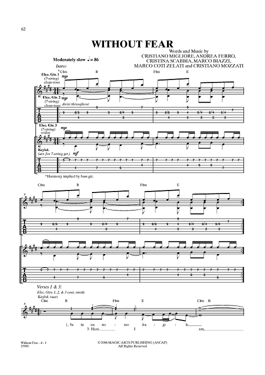 Digital Sheet Music for Without Fear by Lacuna Coil, Cristiano Migliore, Andrea Ferro, Cristina Scabbia, Marco Biazzi, Marco Coti Zelati, Cristiano Mozzati scored for Guitar Tab/Vocal; id:360007