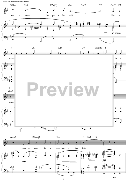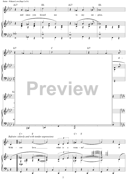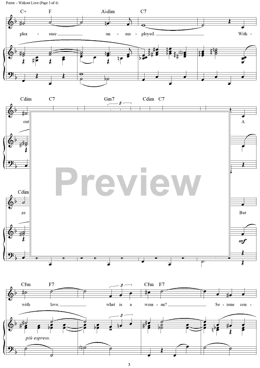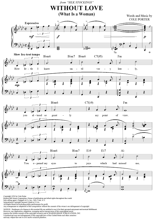 Digital Sheet Music for Without Love by Cole Porter scored for Piano/Vocal/Chords; id:316992
