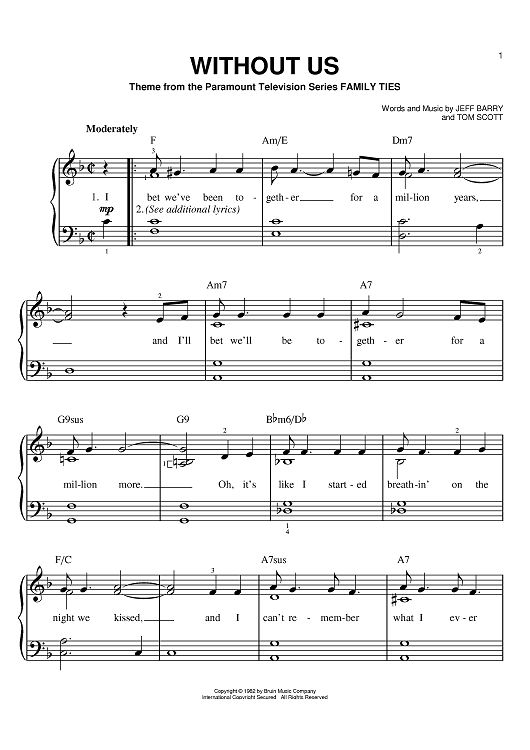 Digital Sheet Music for Without Us by Jeff Barry, Tom Scott scored for Easy Piano; id:385326