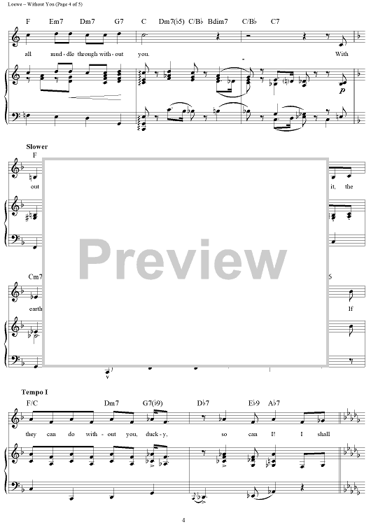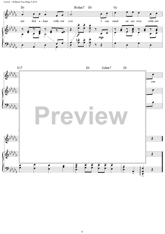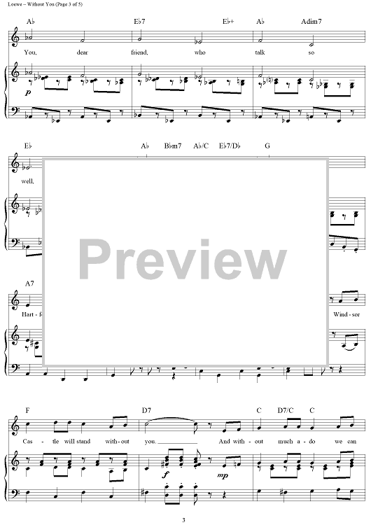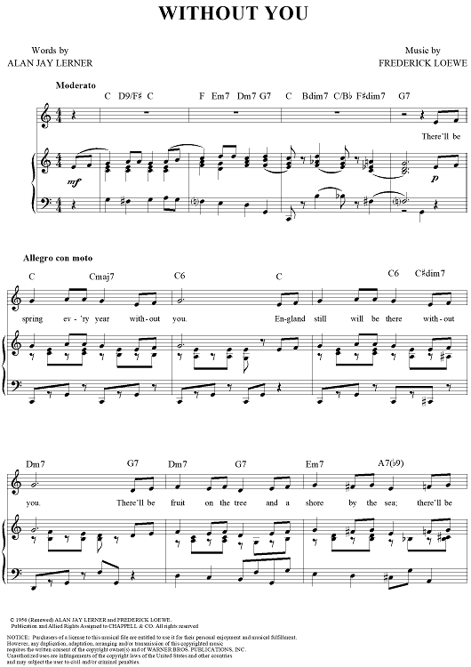 Digital Sheet Music for Without You by Frederick Loewe, Alan Jay Lerner scored for Piano/Vocal/Chords; id:360490