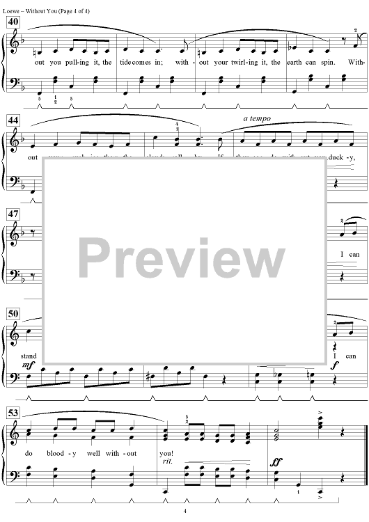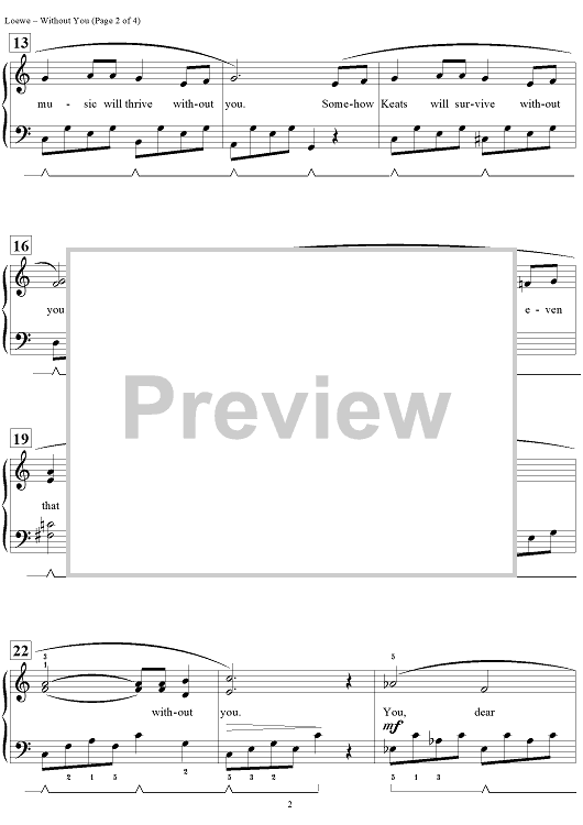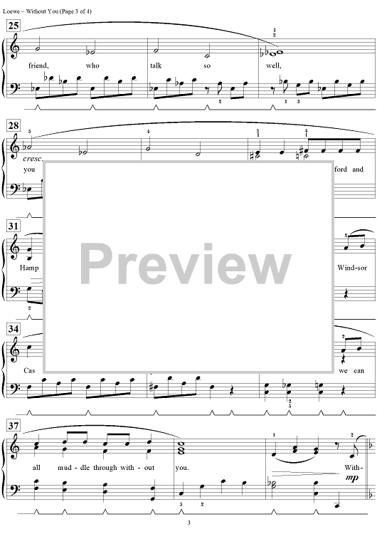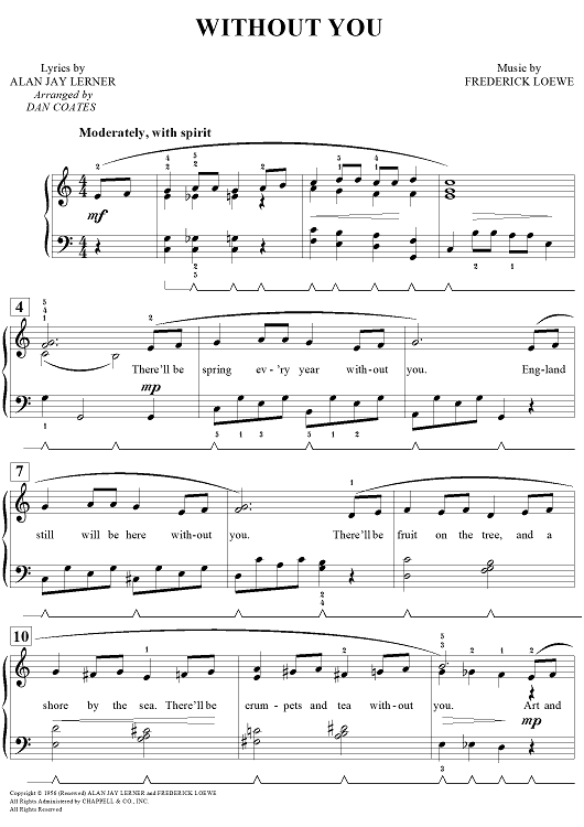 Digital Sheet Music for Without You by Dan Coates, Frederick Loewe, Alan Jay Lerner scored for Easy Piano/Vocal/Chords; id:450264