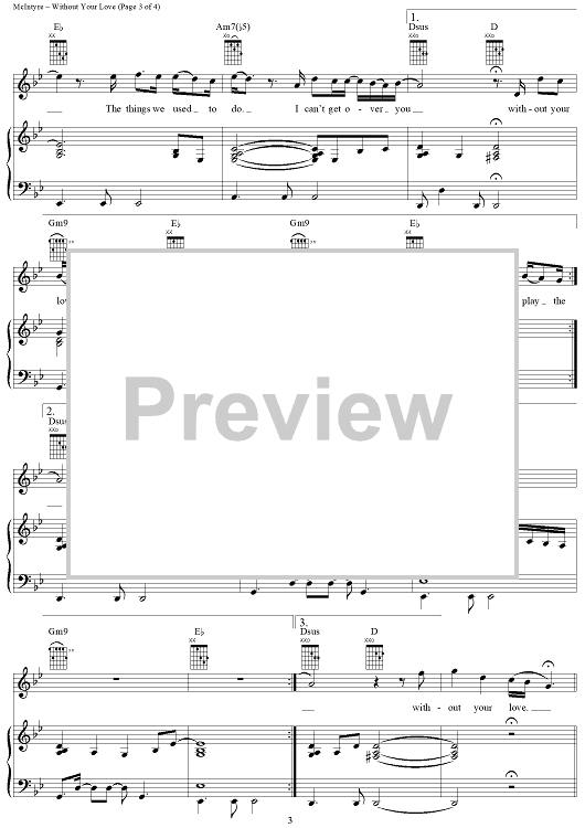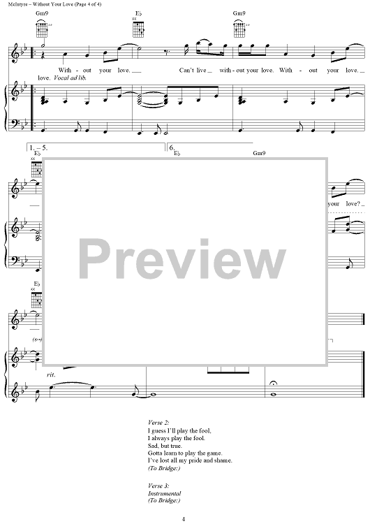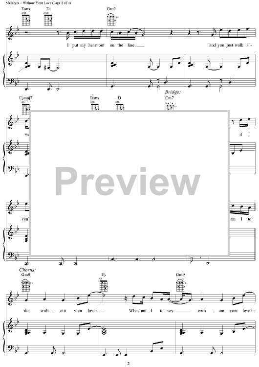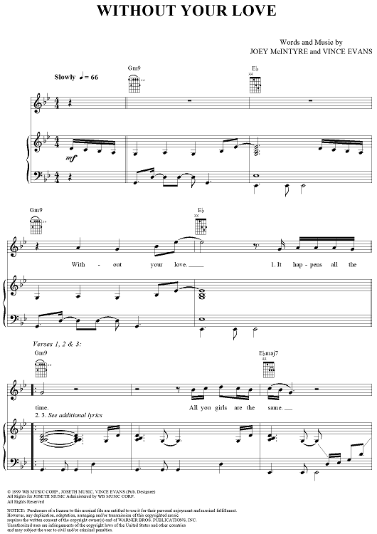 Digital Sheet Music for Without Your Love by Joey McIntyre, Vince Evans scored for Piano/Vocal/Chords; id:234880