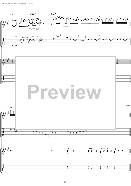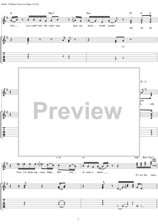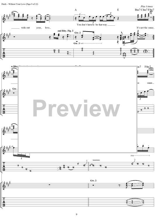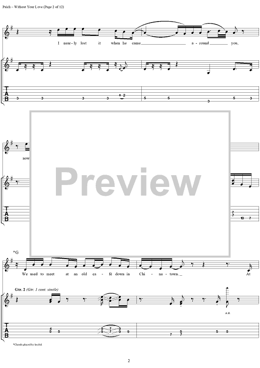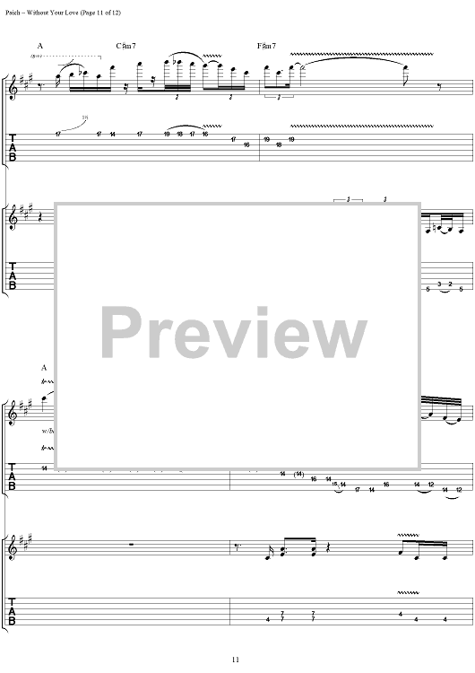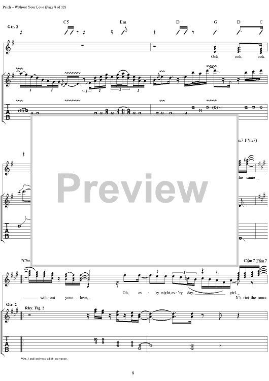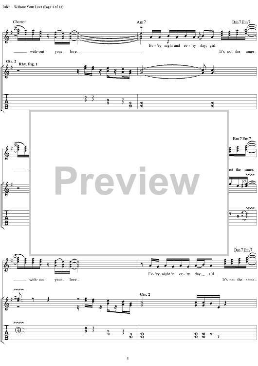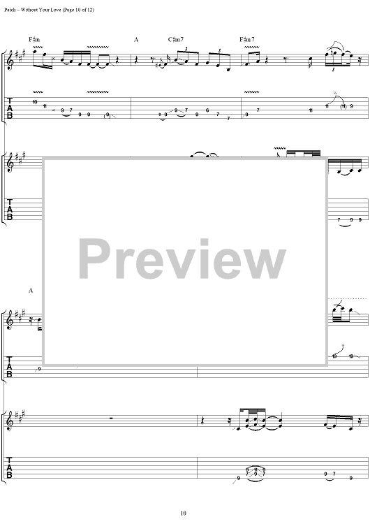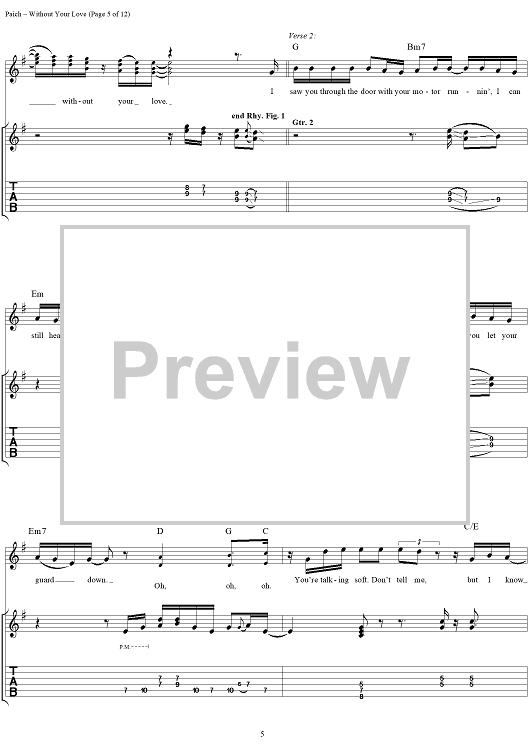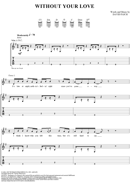 Digital Sheet Music for Without Your Love by Toto, David Paich scored for Guitar Tab/Vocal; id:254480