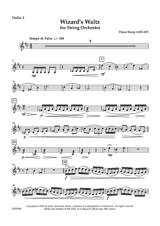 Digital Sheet Music for Wizard’s Waltz for String Orchestra - Violin 2 by , Thom Sharp scored for String Orchestra; id:460962