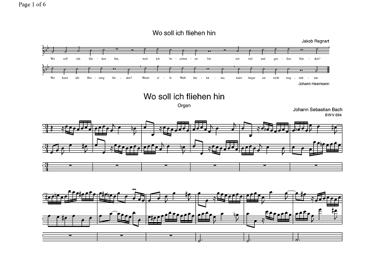 Digital Sheet Music for Wo soll ich fliehen hin BWV 694 by Johann Sebastian Bach scored for Organ Solo; id:330236