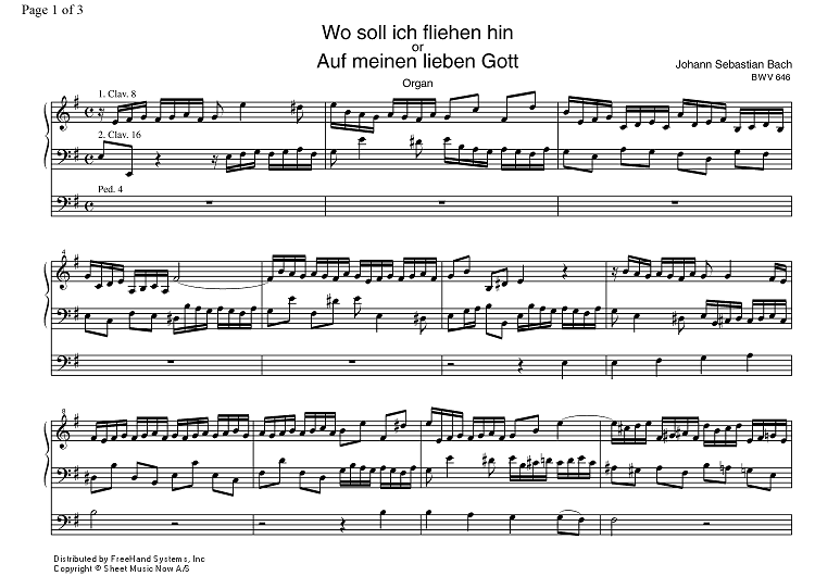 Digital Sheet Music for Wo soll ich fliehen or Auf meinen lieben Gott BWV 646 by Johann Sebastian Bach scored for Organ Solo; id:330249