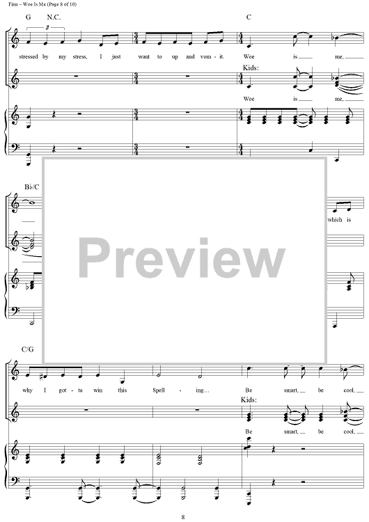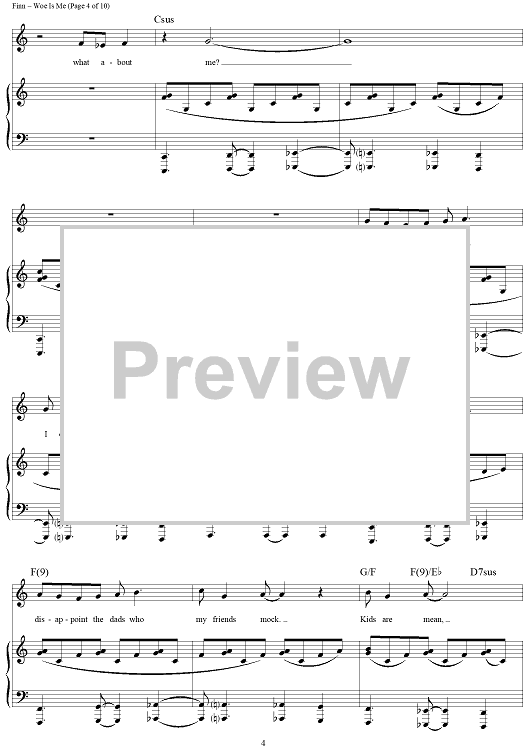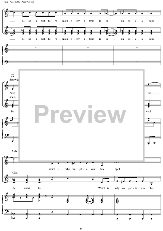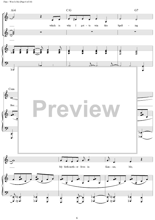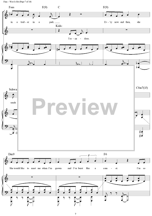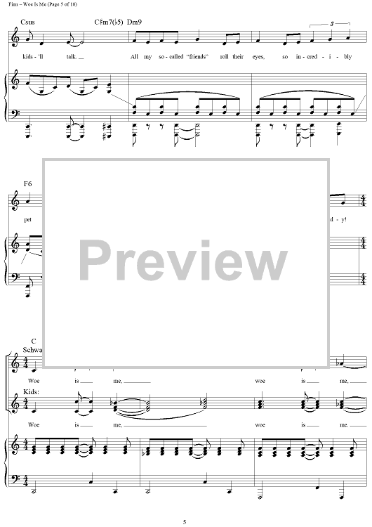 Digital Sheet Music for Woe Is Me by William Finn scored for Piano/Vocal/Chords; id:317822