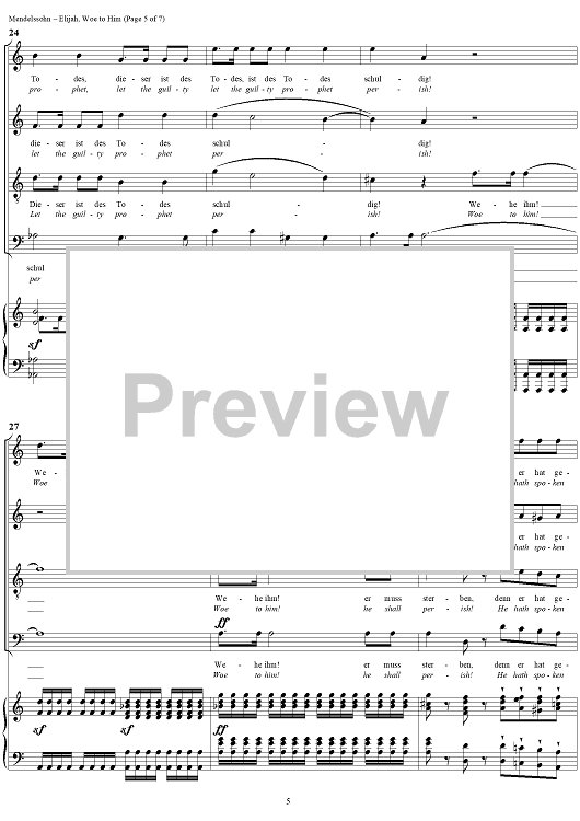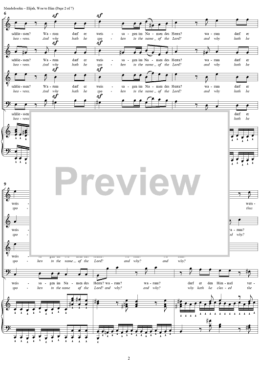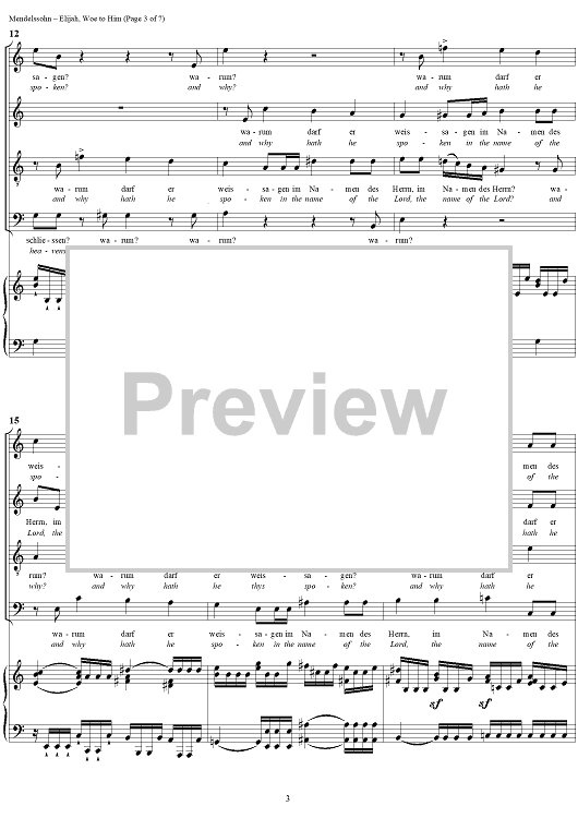 Digital Sheet Music for Woe to Him - No. 24 from "Elijah", part 2 by Felix Mendelssohn scored for Vocal Score; id:252280