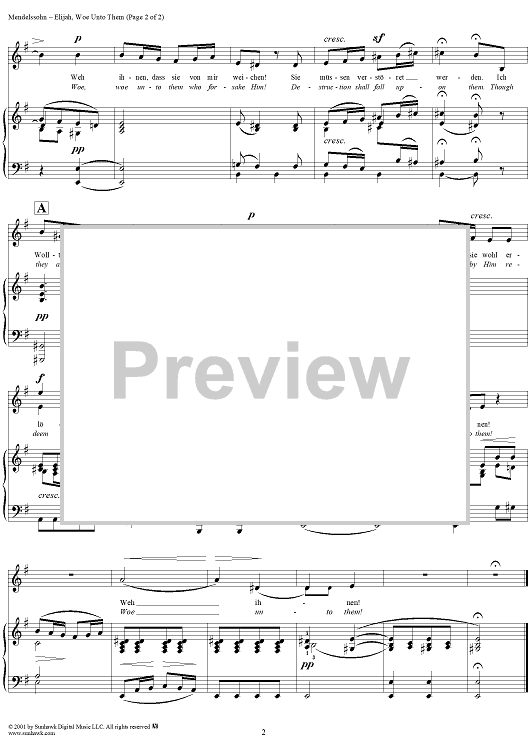 Digital Sheet Music for Woe Unto Them - No. 18 from "Elijah", part 1 by Felix Mendelssohn scored for Vocal Score; id:252286