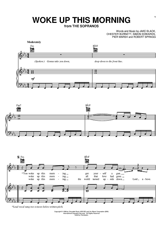 Digital Sheet Music for Woke Up This Morning by Alabama Three, Jake Black, Simon Edwards, Howlin' Wolf scored for Piano/Vocal/Chords; id:373979