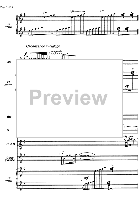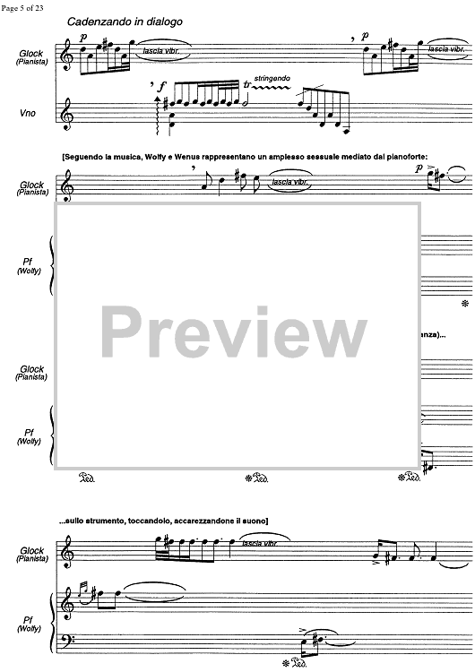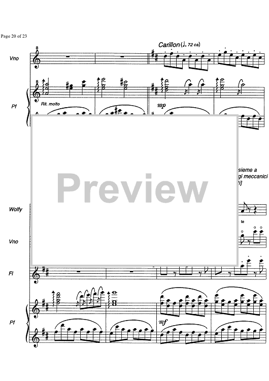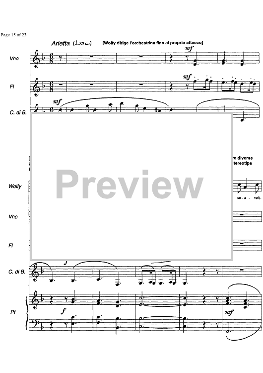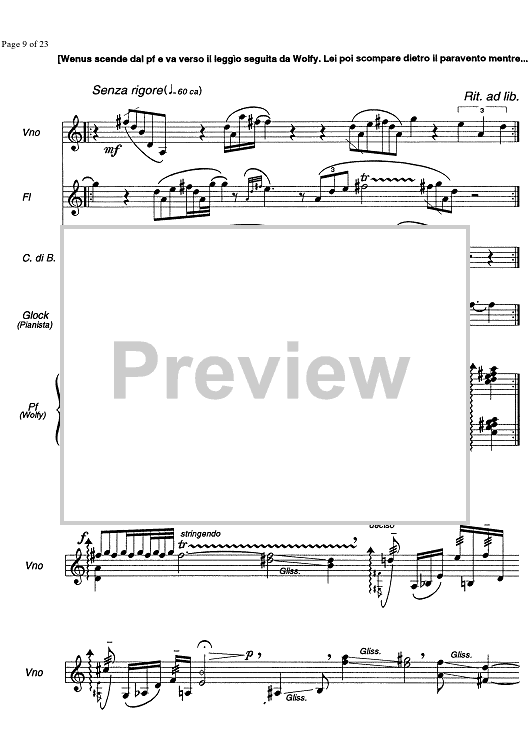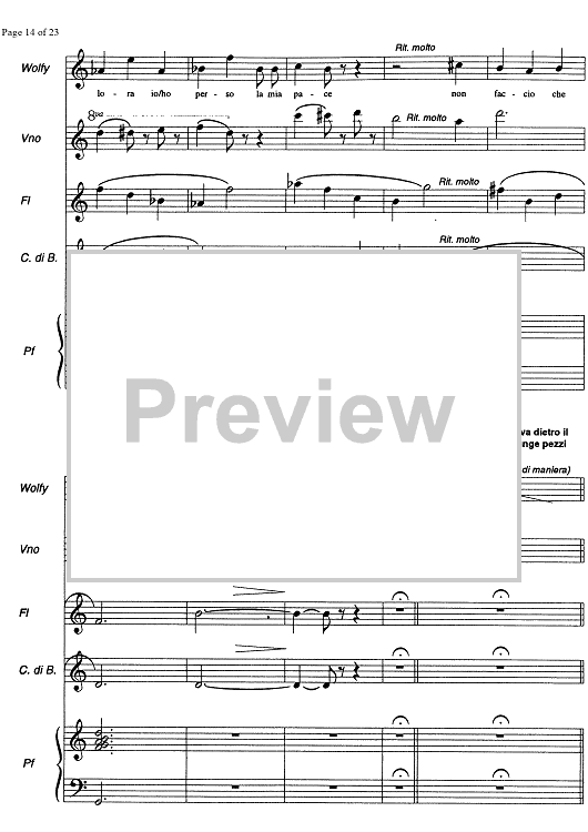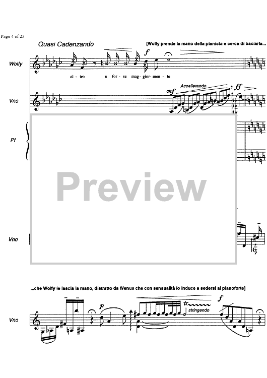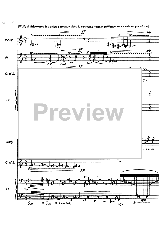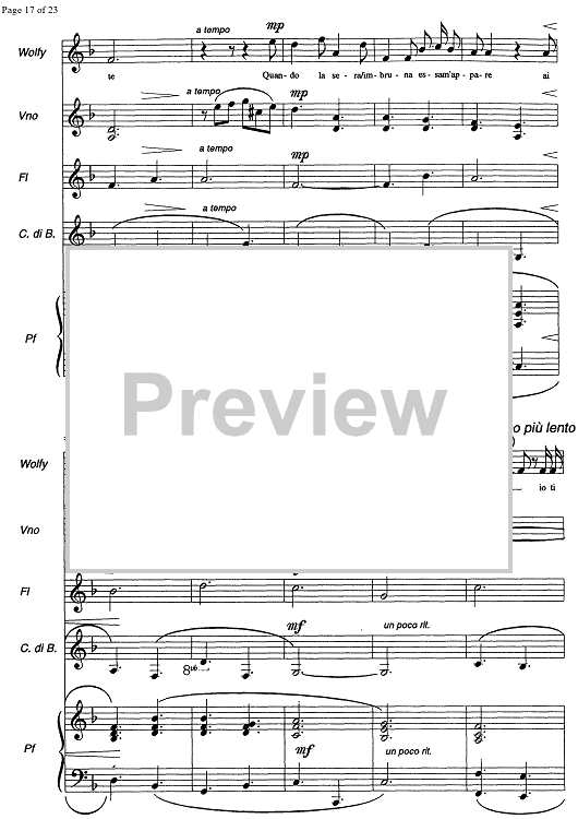 Digital Sheet Music for Wolfy and Wenus - Score by , Roberto Becheri scored for Tenor or Baritone/Violin/Flute/F Basset Horn/Piano; id:335737