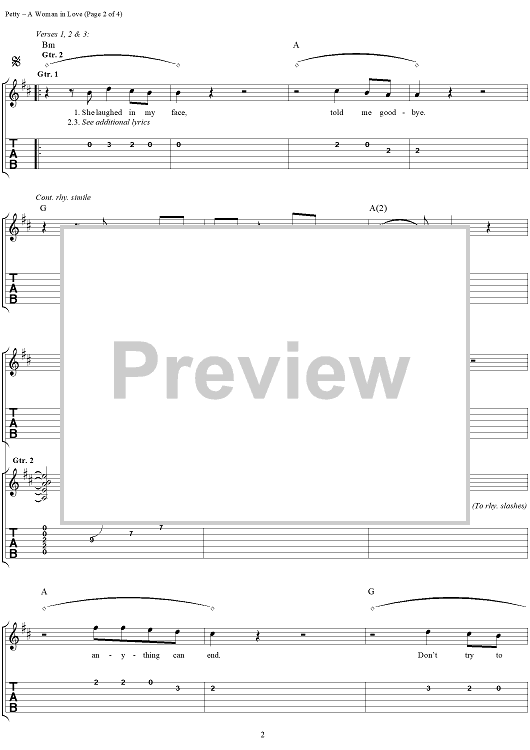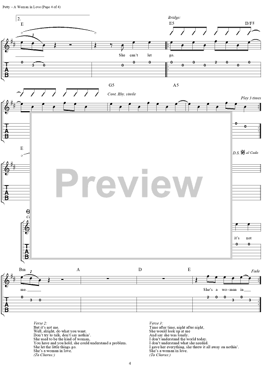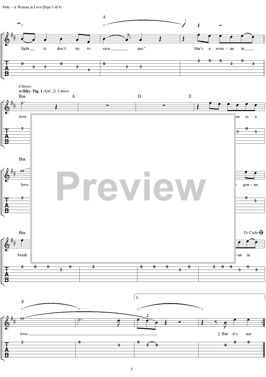 Digital Sheet Music for Woman In Love (It's Not Me) by Tom Petty, Louis Martinez, Michael Cambell, Adam Levy scored for Easy Guitar Tab/Vocal; id:260015